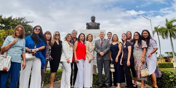 El Club Peruano de la Florida, en colaboración con el Ministro David Vergara, Cónsul General del Perú en Miami, y el Ministro Luis Leyva, Cónsul Adjunto, se reunió frente a un significativo monumento para los peruanos y latinoamericanos, rindiendo homenaje al 145° aniversario del Combate Naval de Angamos, acontecido el 8 de octubre de 1879.